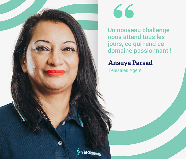 Un nouveau challenge nous attend tous les jours, ce qui rend ce domaine passionnant ! » Nous confie Ansuya Parsad, Telesales Agent depuis maintenant 18 ans chez HealthActiv.